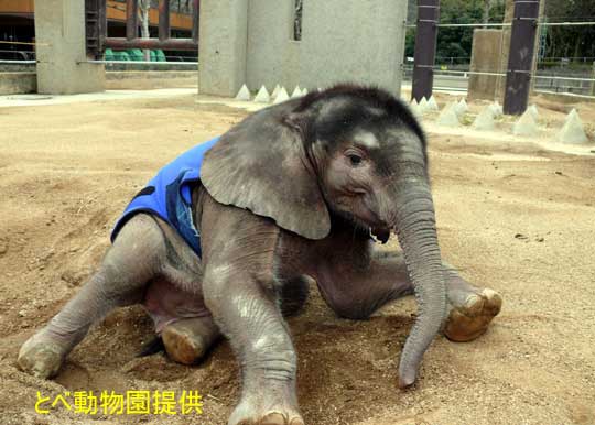 飼育員さんの手作りガウンを着た媛ちゃん。 |