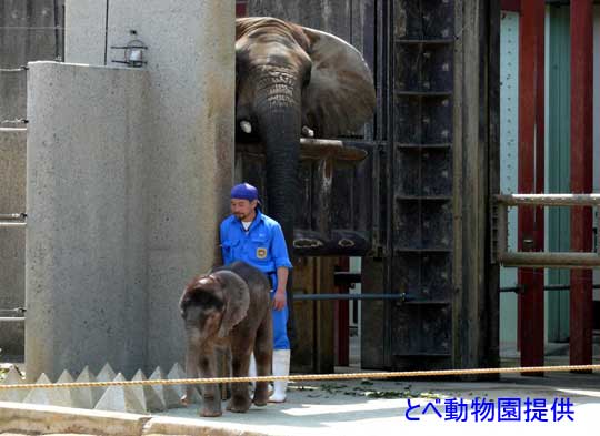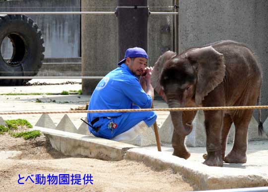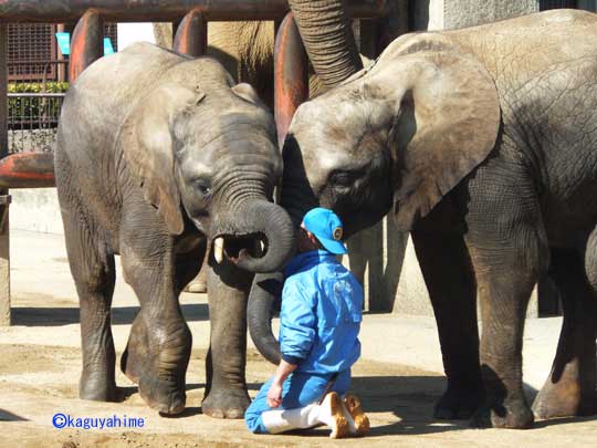 ゾウと人間の絆。母親 リカは飼育員さんを信頼し、子供 媛は飼育員さんを信じ慕い、そして飼育員さんはゾウ親子の幸せだけを願っています。
