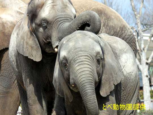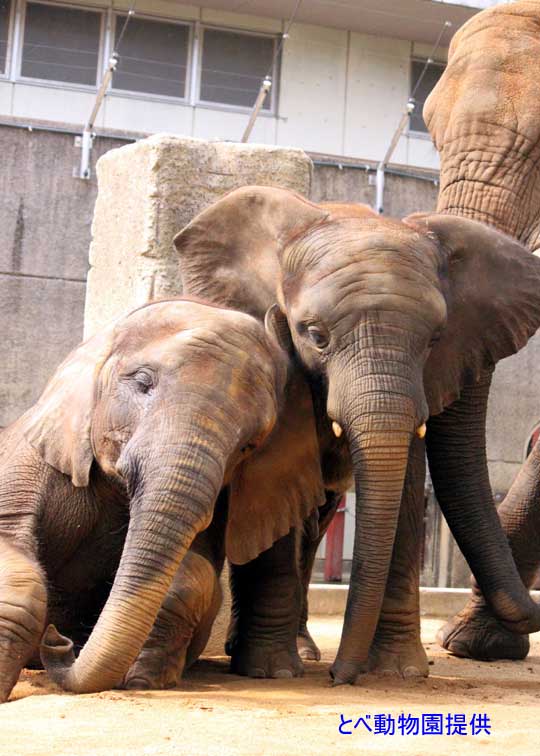 日本では、とべ動物園だけでしか見ることのできないアフリカゾウの家族です。